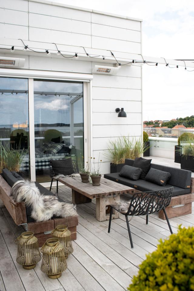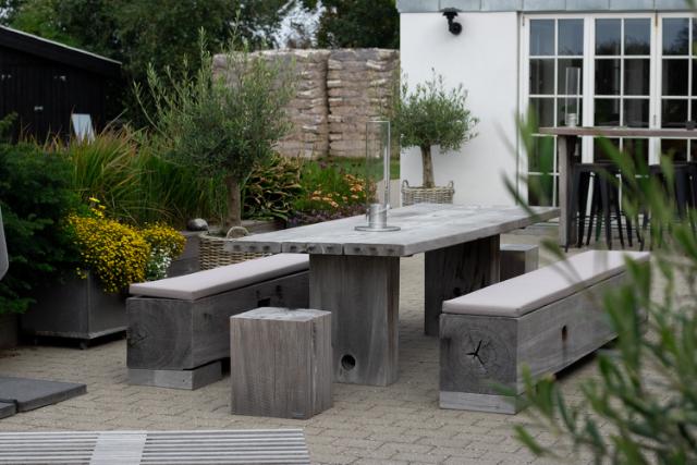 Decorate your rooftop terrace with heavy, weather resistant furniture made from reclaimed harbour wood and enjoy a long season without worries.